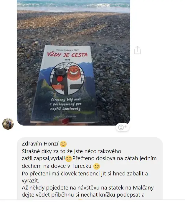 Cestování se psem bylo kulisou, ale kniha je hlavně o životních rozhodnutích, vůli nevzdávat se, bourání předsudků a hledání krásy tam, kde ji jiní nevidí. Věřím, že dobro se vrací a že i z nevýhody se dá udělat výhoda.